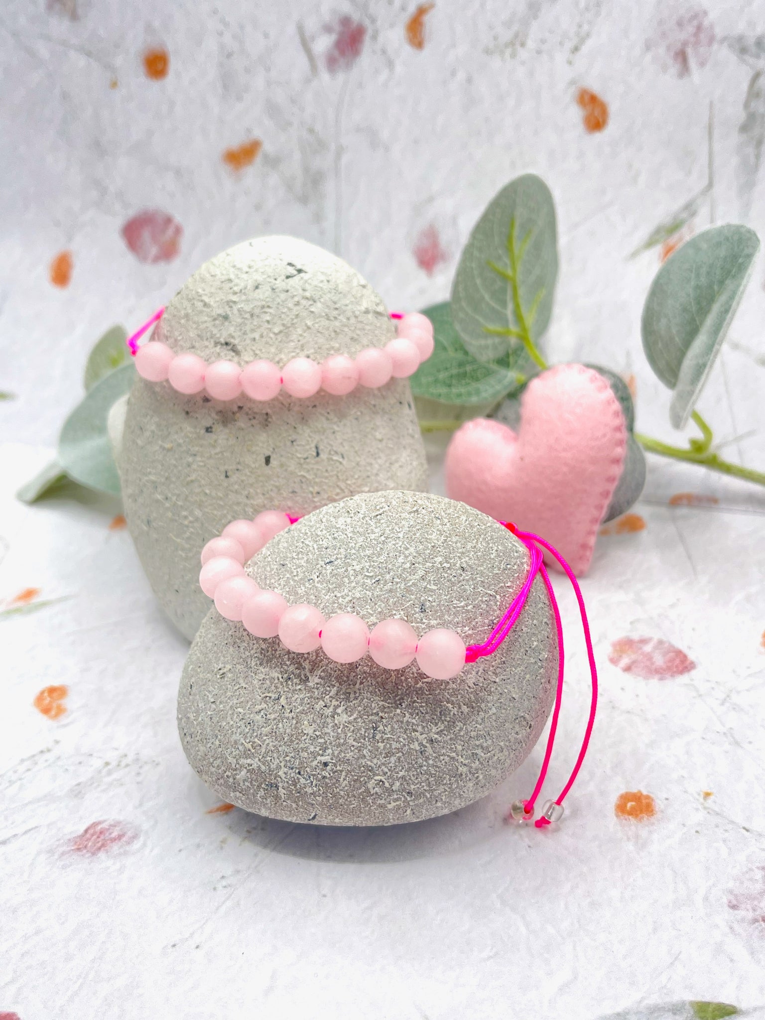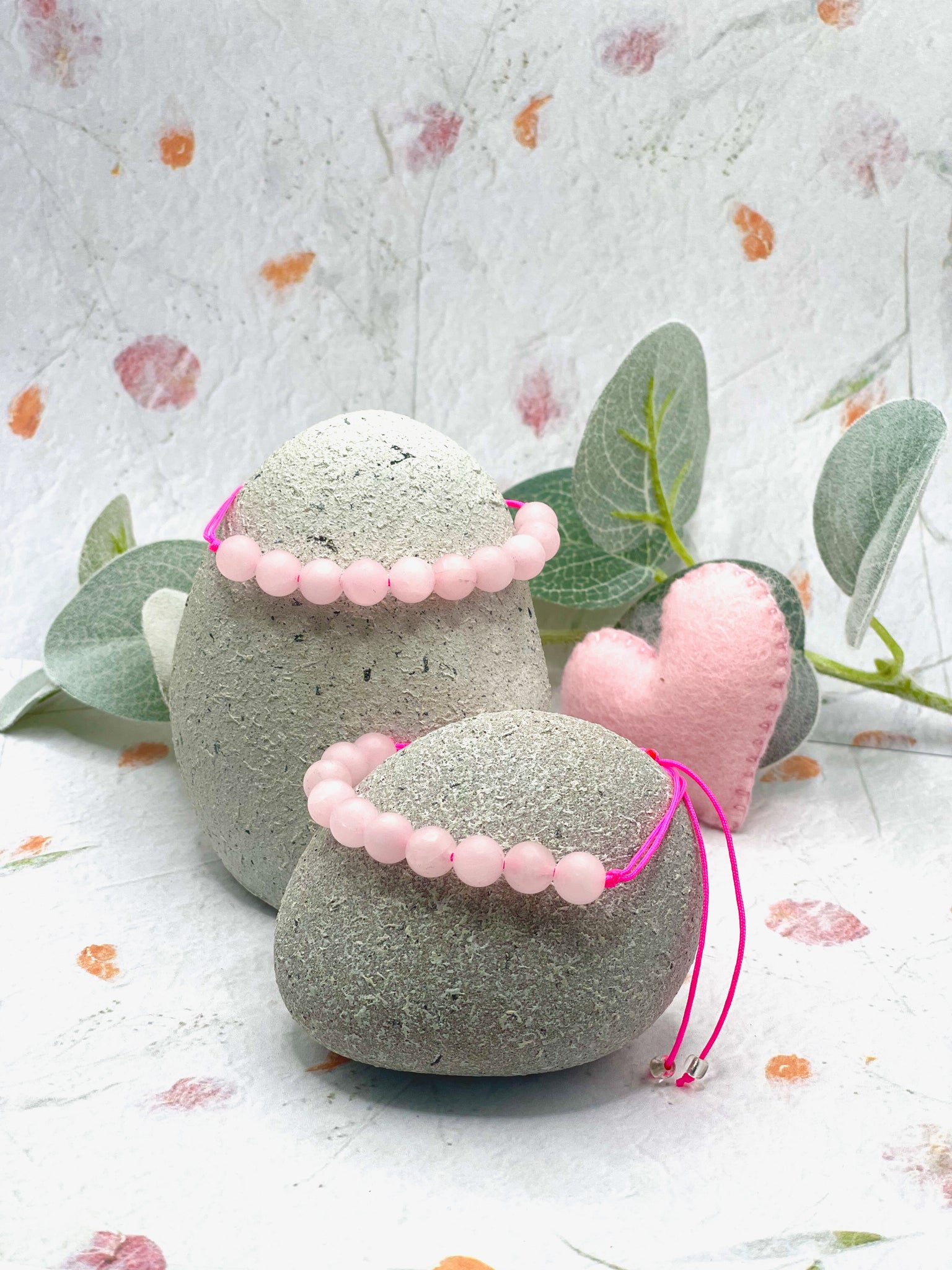 Each one is made with 8mm frosted Rose Quartz beads, their soft matte glow inviting calm and tenderness into your day.