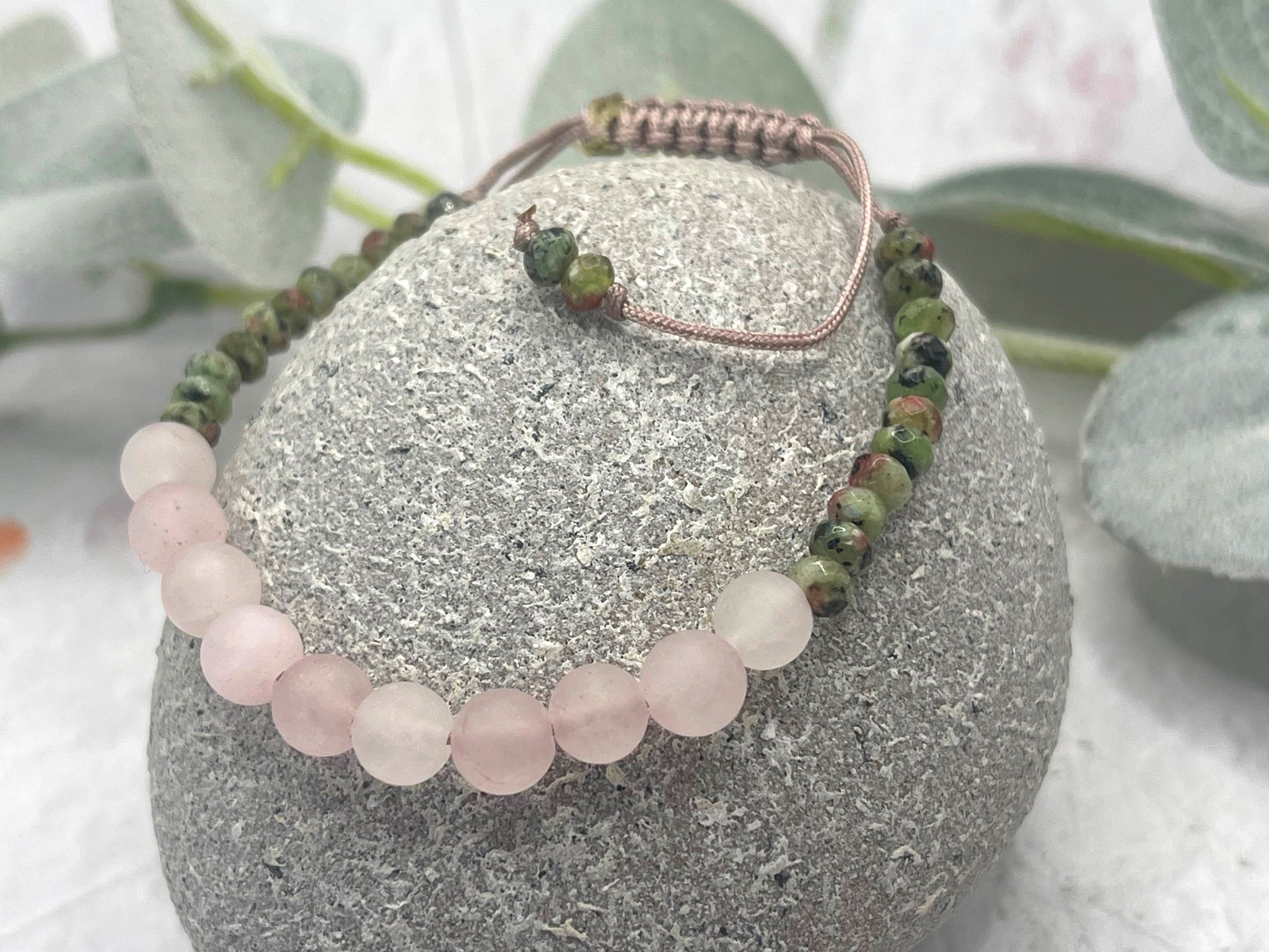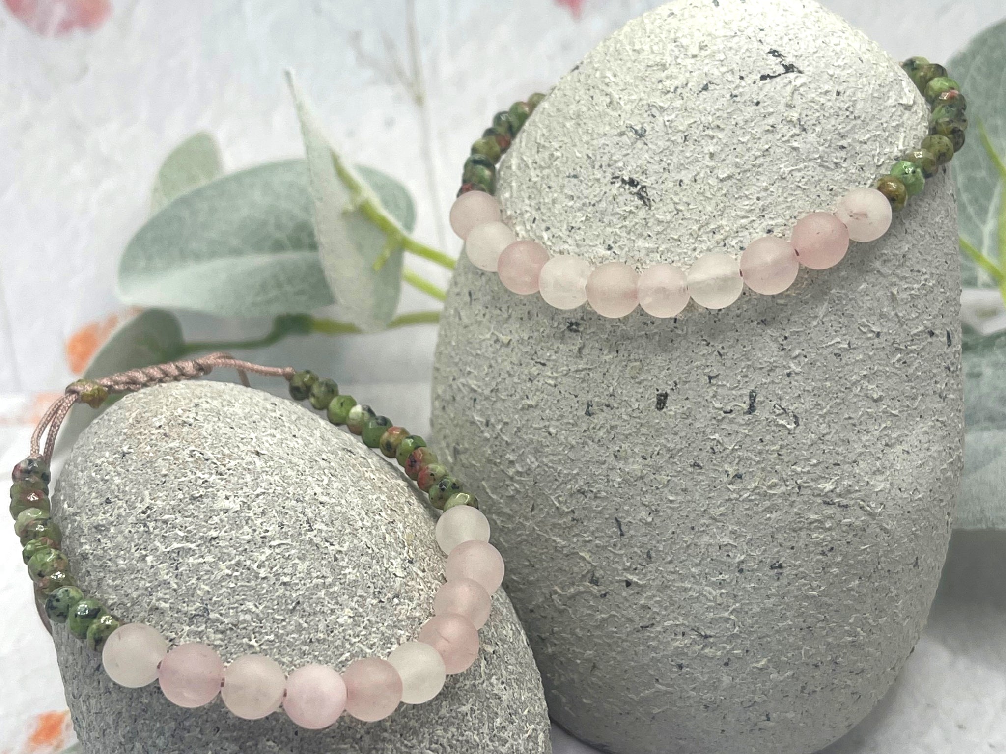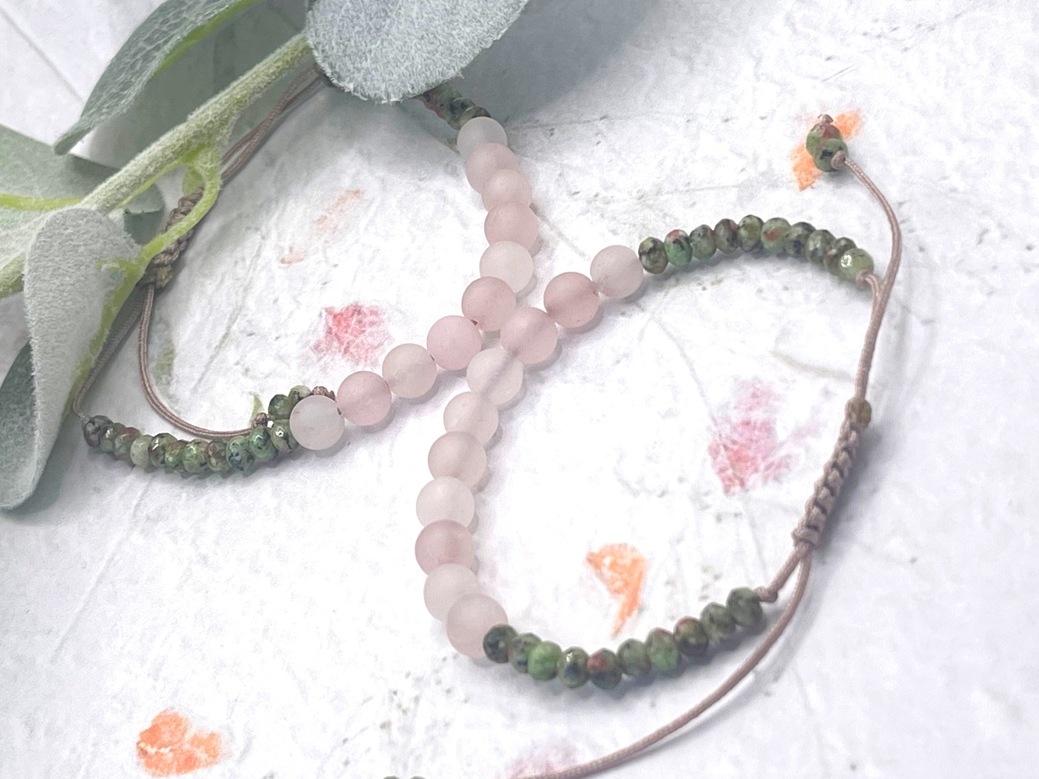 Together, Rose Quartz with Red Green Jasper creates a harmonious blend of love, grounding, and balance, making this bracelet a supportive tool for meditation, mindfulness, and everyday wear.